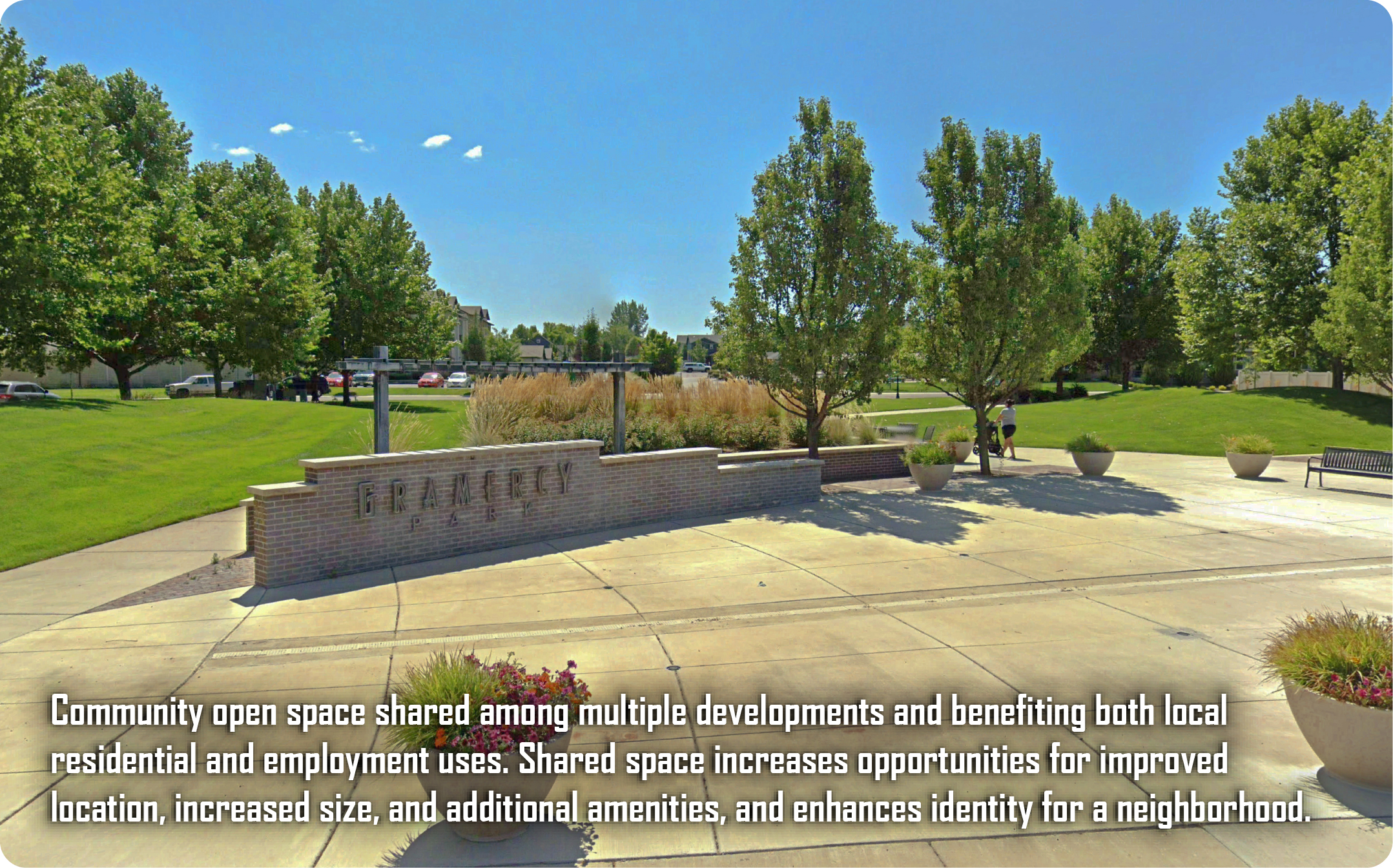 These examples are all developed in unique projects with locations, environments, and land development policies that vary across the County. However, the design nodes and links depicted may be replicated in similar settings within Meridian.
